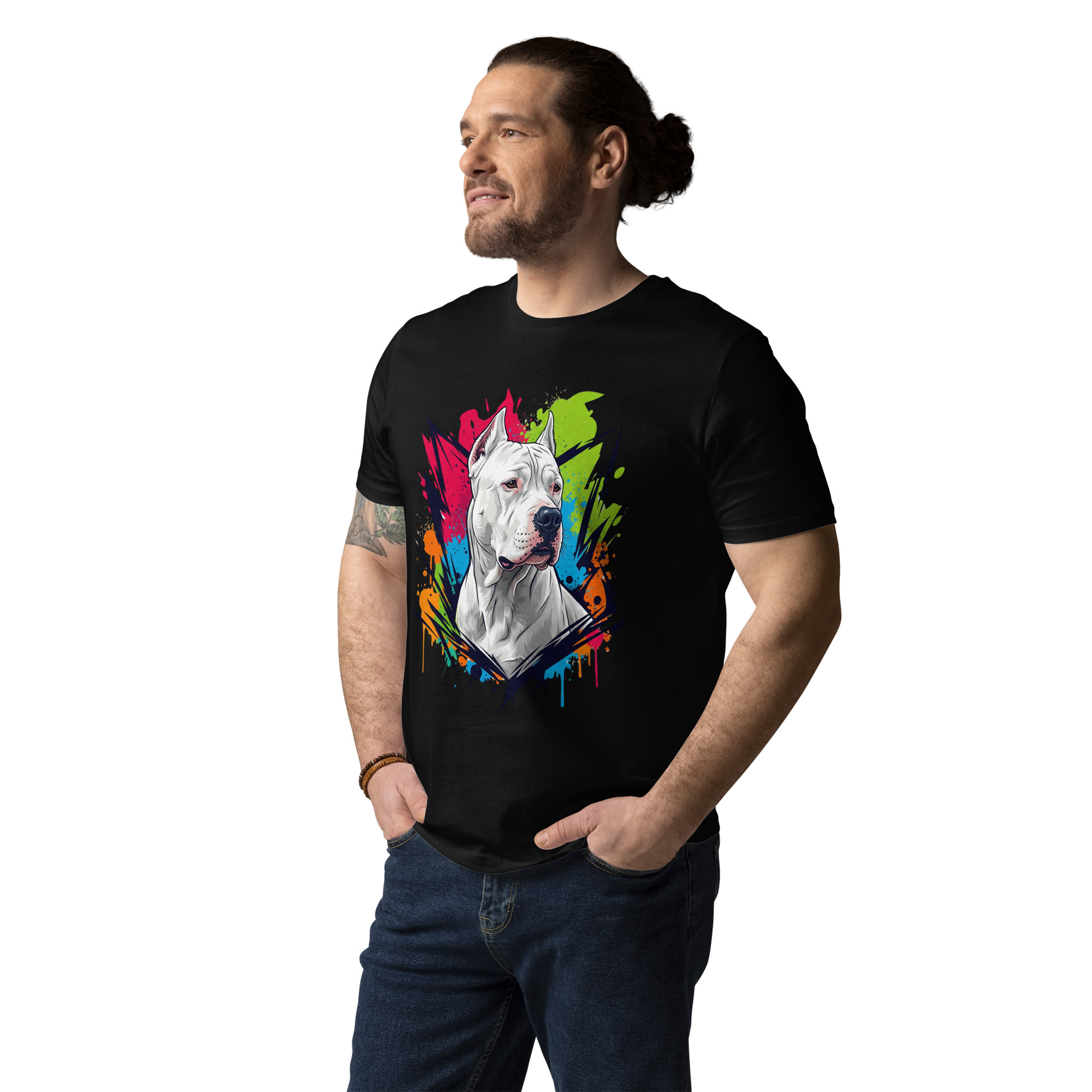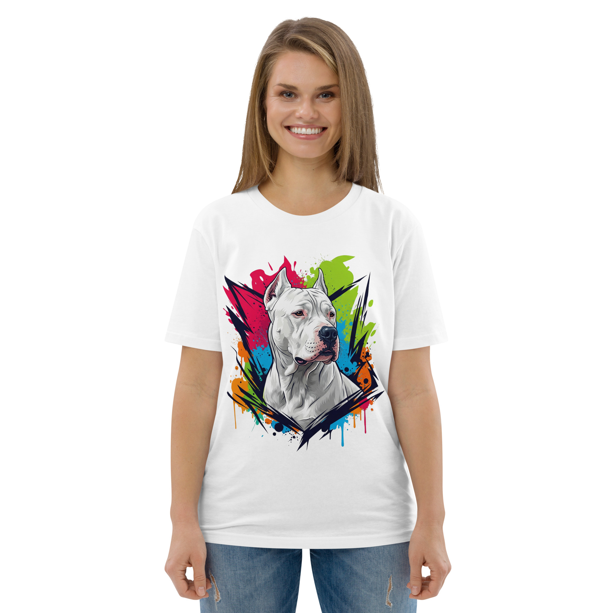 Celebra la nobleza y lealtad del Dogo Argentino con esta camiseta de algodón orgánico. Su diseño exclusivo captura la poderosa esencia de tu fiel compañero, mientras su tejido suave y sostenible te envuelve en pura comodidad. Una prenda imprescindible para quien conoce el corazón de oro que se esconde tras esa imponente mirada.