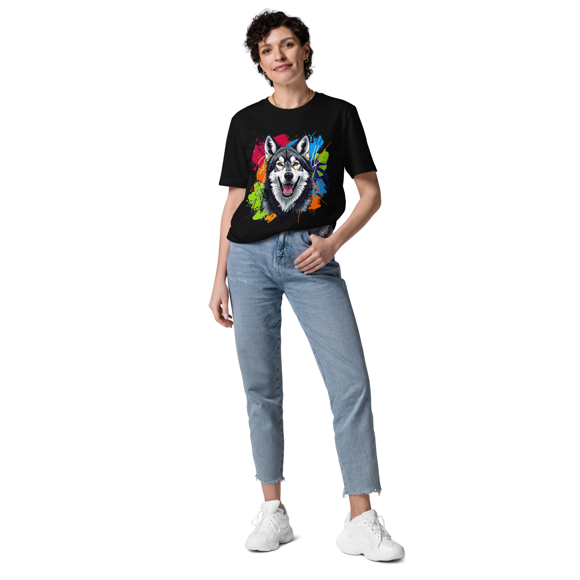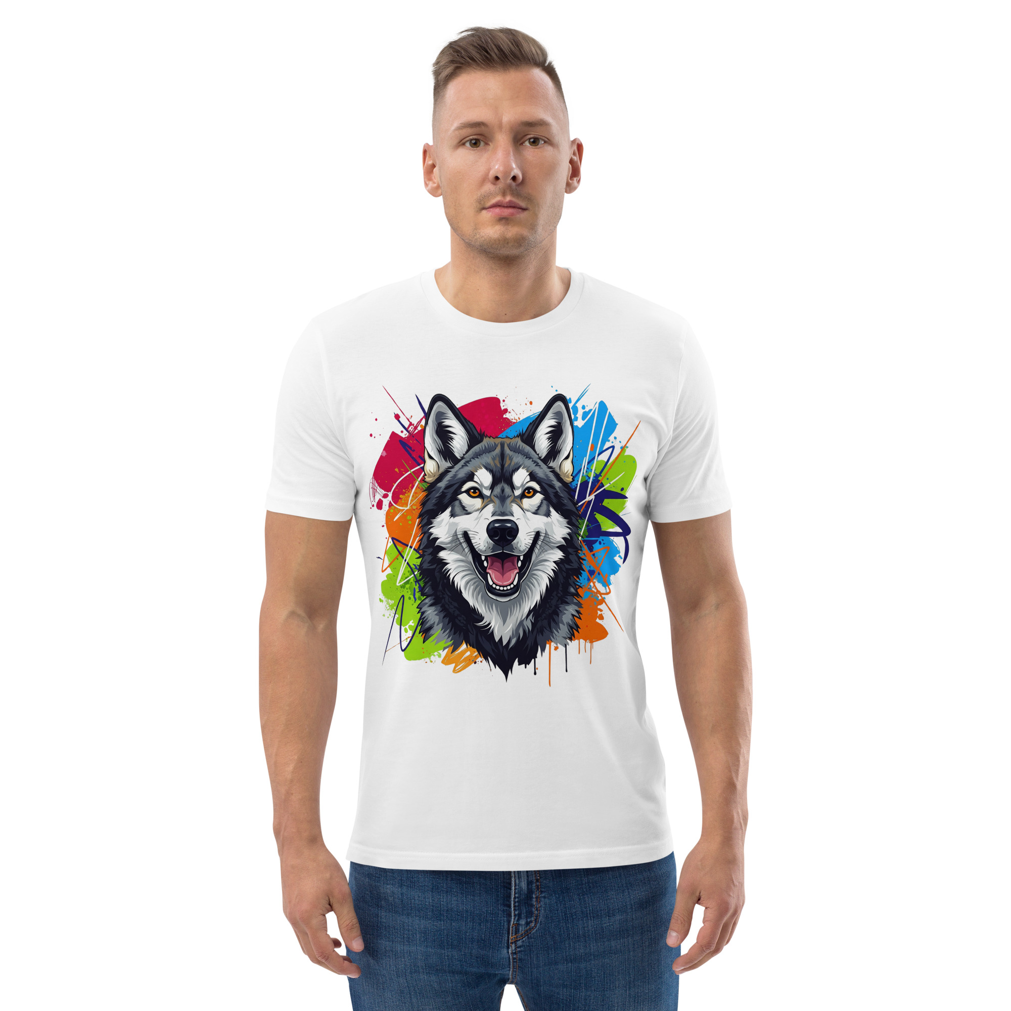 Camiseta unisex de algodón orgánico con un diseño único de Perro Lobo. Comodidad, estilo y respeto por la naturaleza en una sola prenda. Perfecta para quienes admiran la nobleza de esta raza.