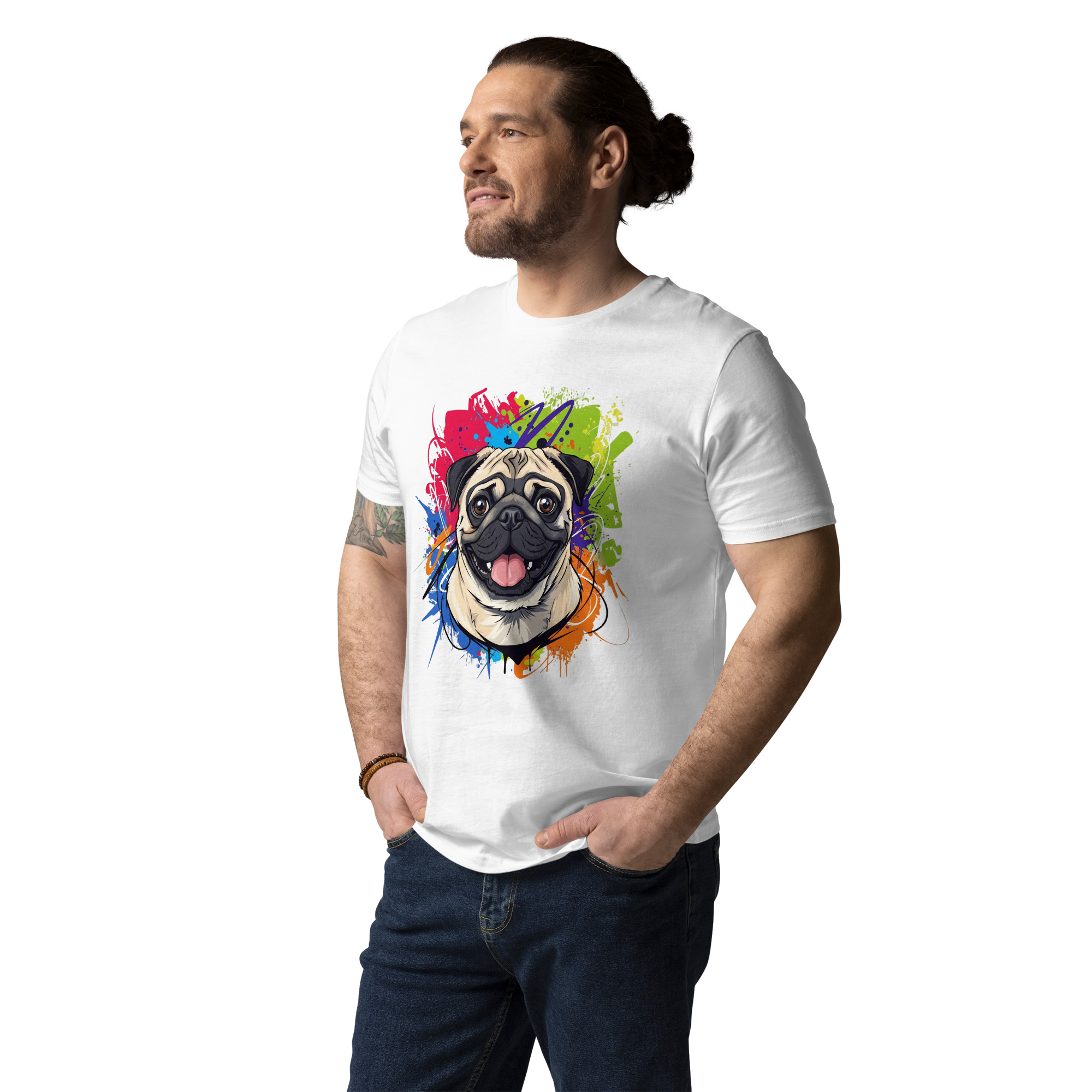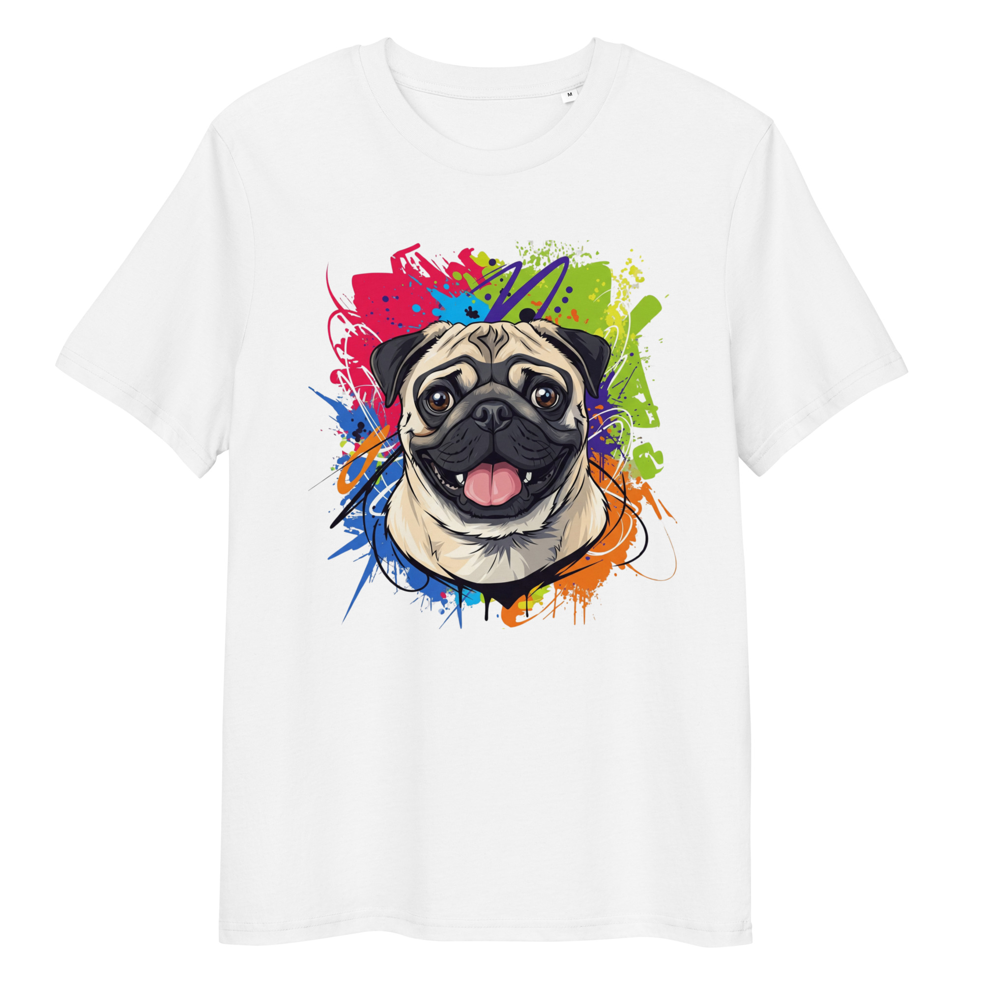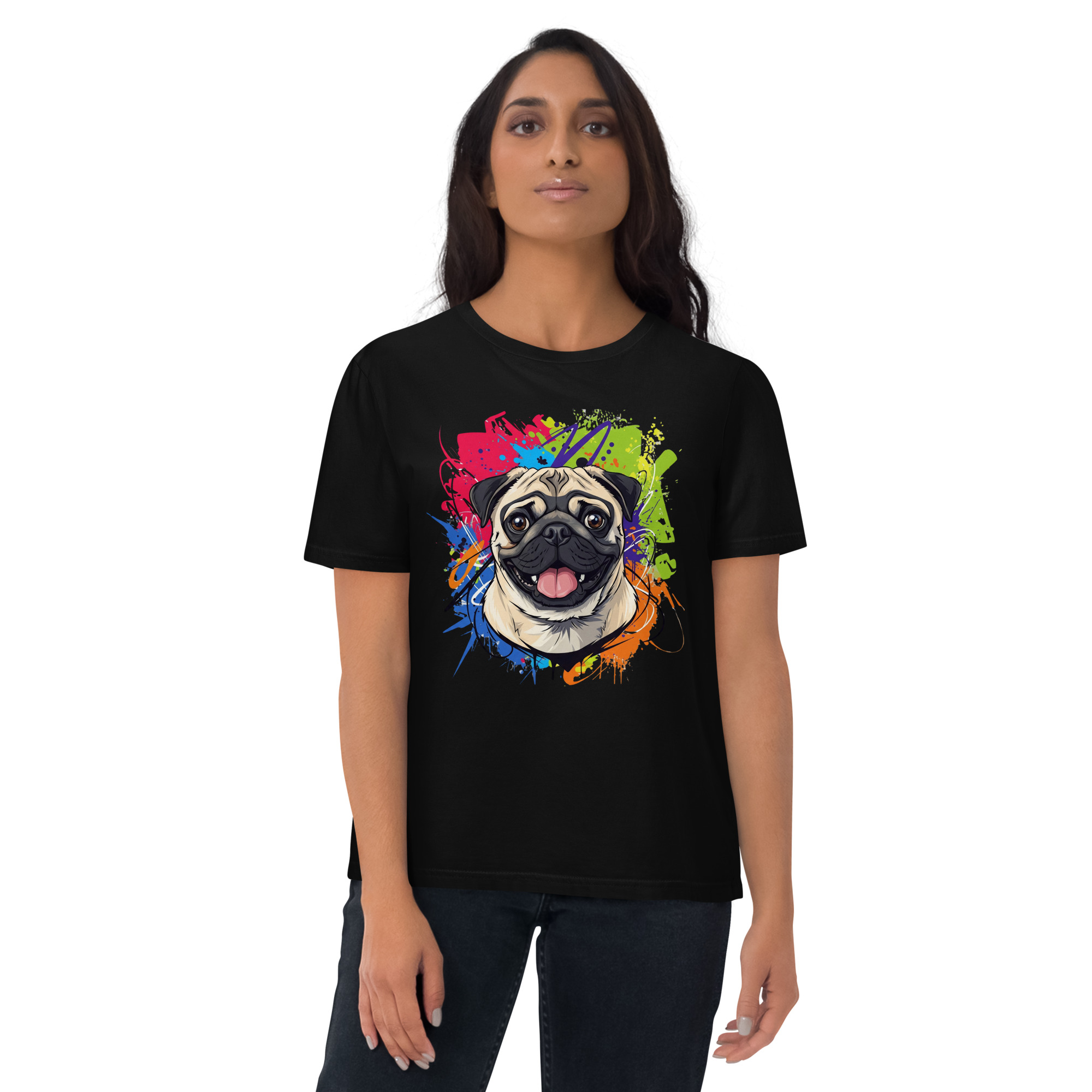 Lleva a tu mejor amigo contigo con esta camiseta de algodón orgánico. Con un diseño exclusivo de un Pug, es la prenda perfecta para quienes valoran la comodidad, la moda sostenible y el amor incondicional.