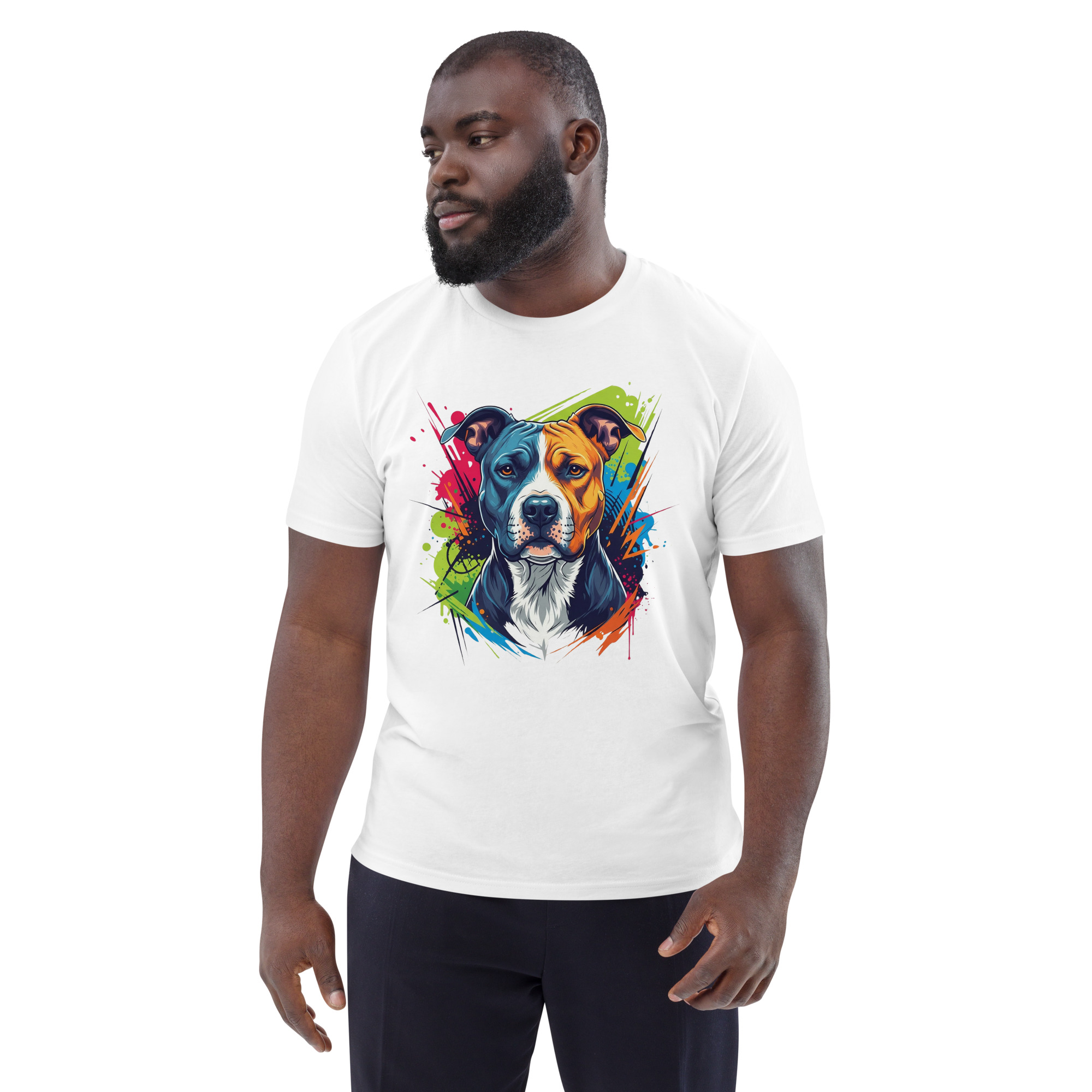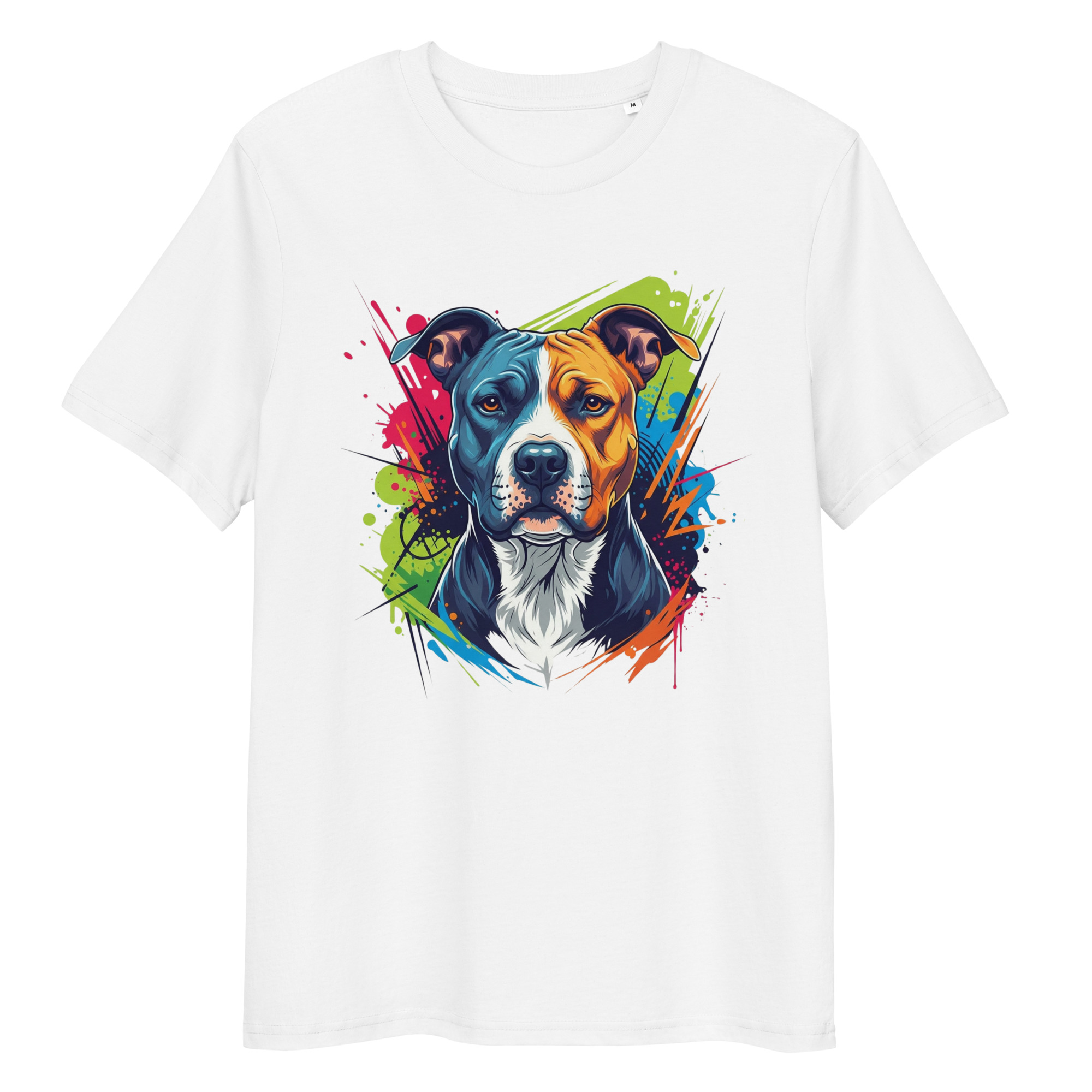 Celebra la nobleza del American Staffy con esta camiseta de algodón orgánico. Un diseño único, un ajuste cómodo y el compromiso con el medio ambiente en una prenda que te hará sentir bien por dentro y por fuera.