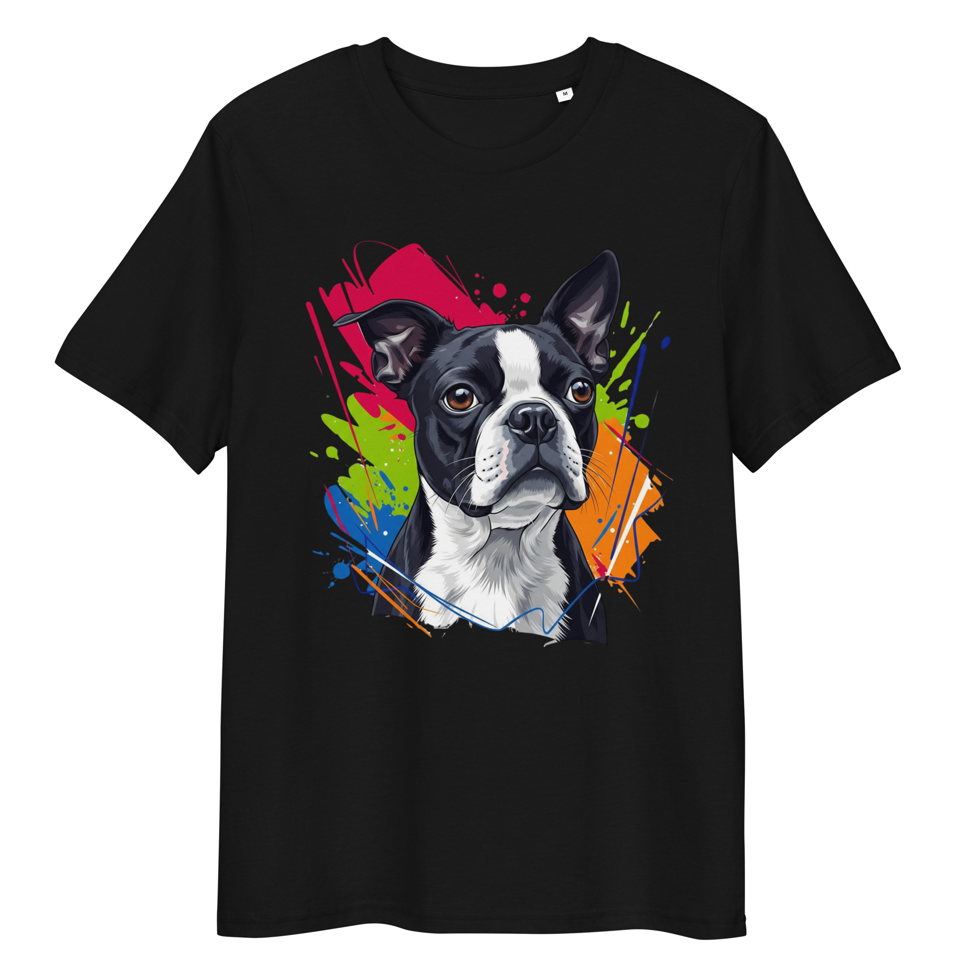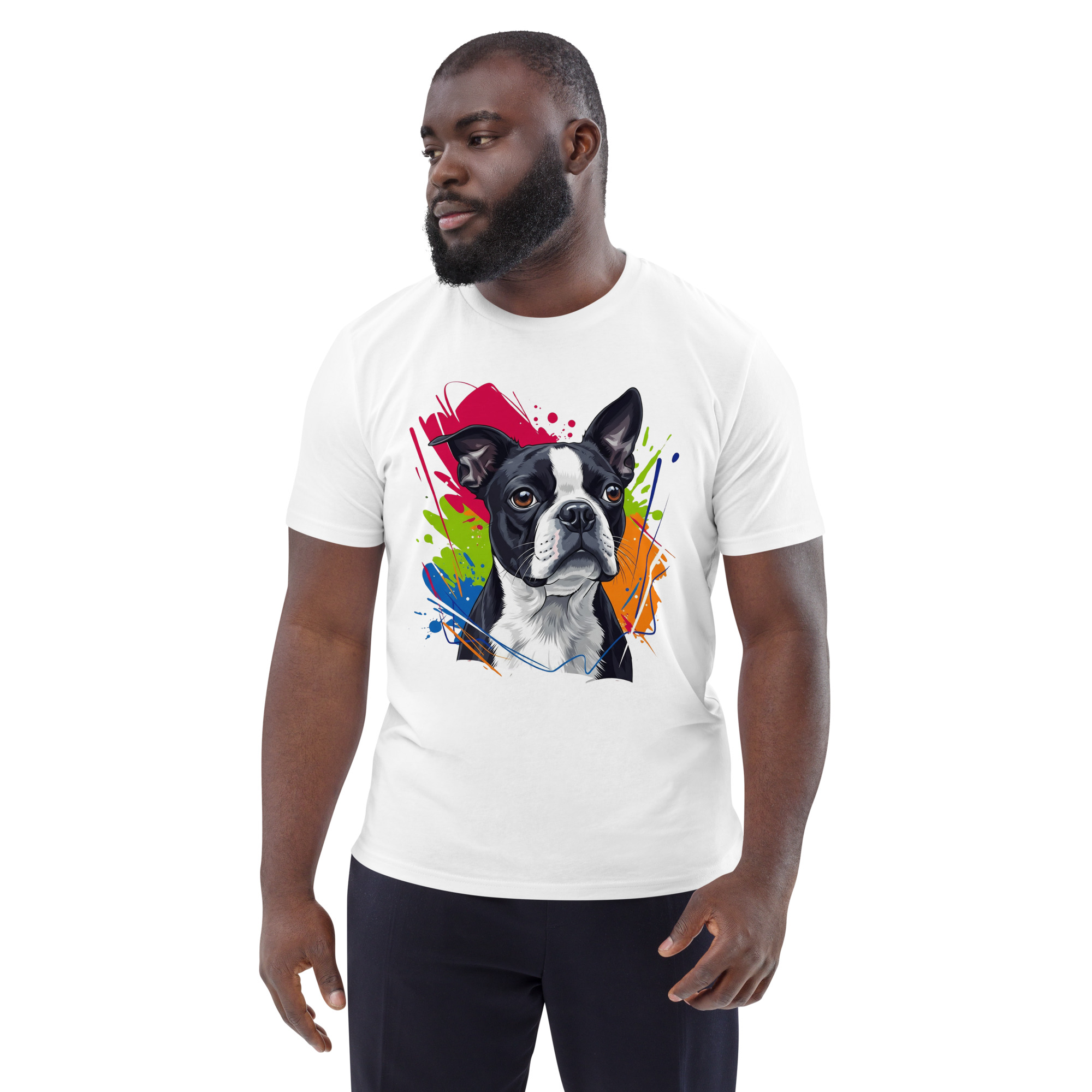 Camiseta suave y transpirable de algodón orgánico, con un diseño exclusivo de un Boston Terrier que captura su carisma único. Perfecta para quienes buscan estilo, comodidad y sostenibilidad.