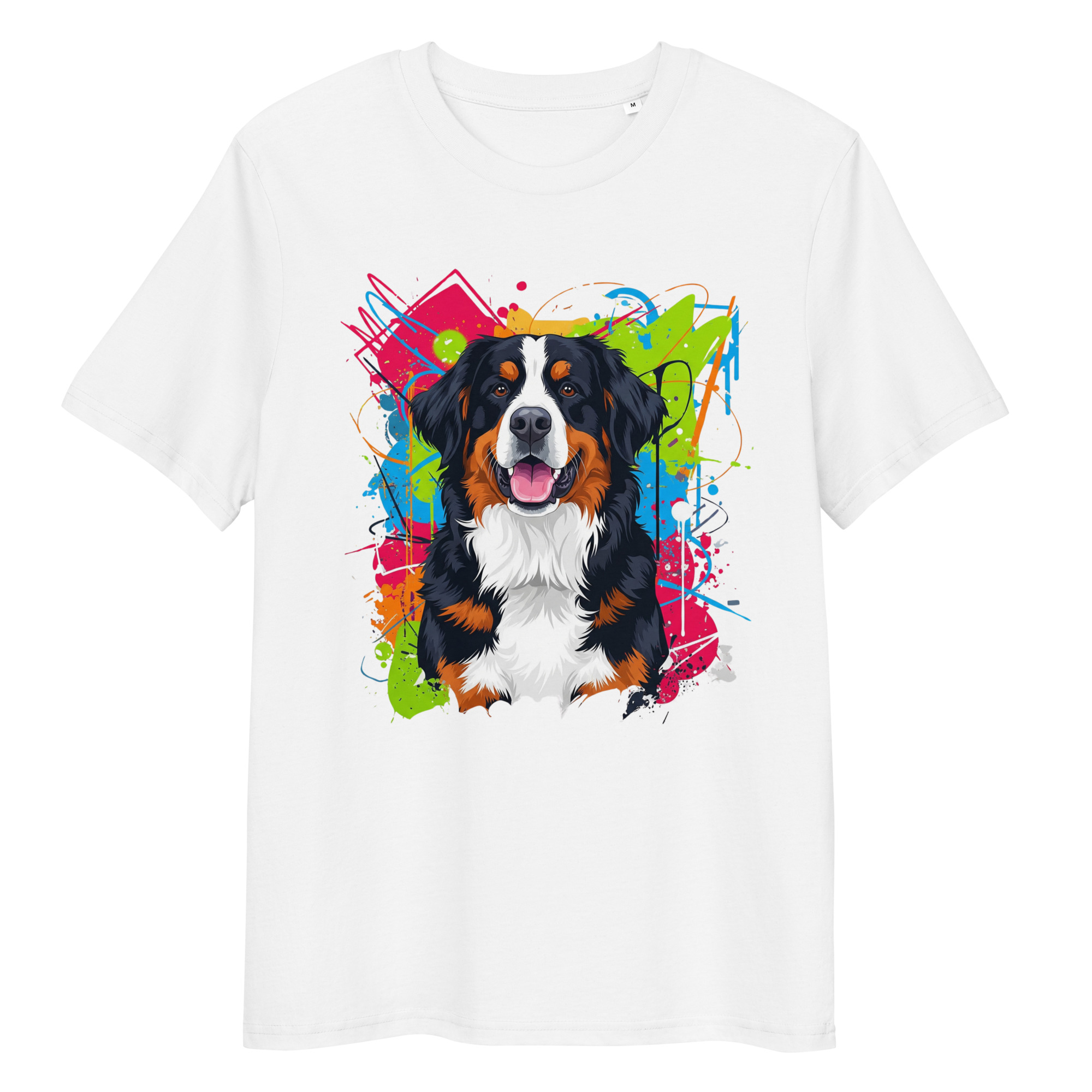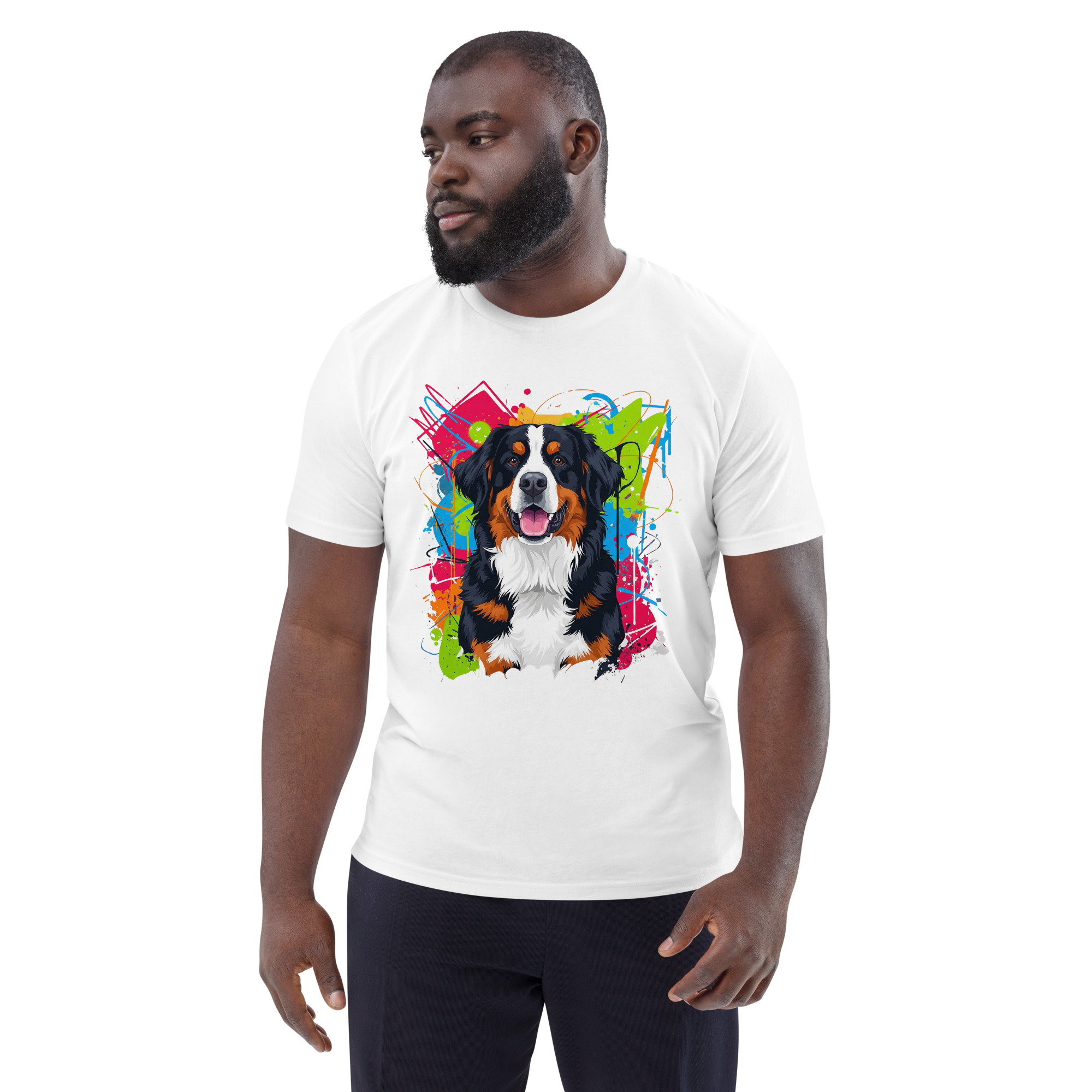 Viste tu amor por los gigantes gentiles. Esta camiseta de algodón orgánico con un diseño exclusivo del Boyero de Berna es la combinación perfecta de comodidad, estilo y sostenibilidad.