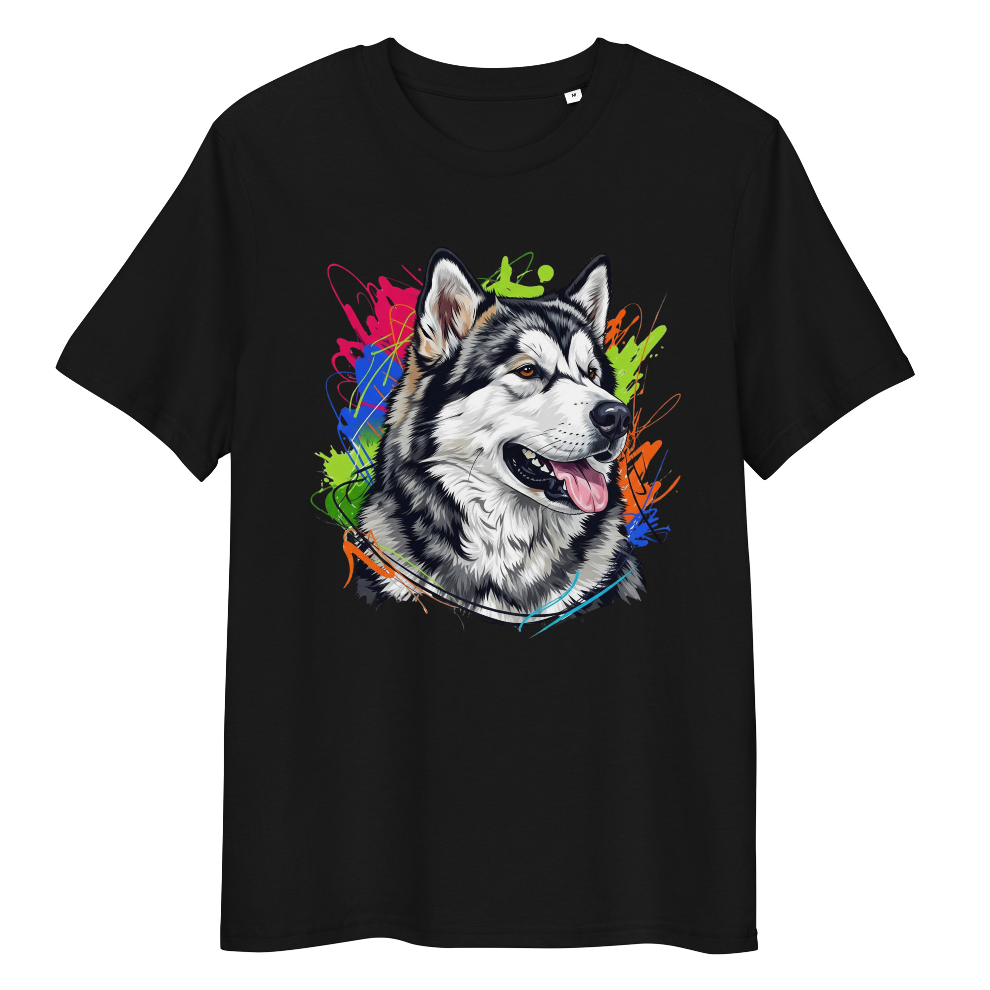 Descubre la combinación perfecta de estilo y conciencia ecológica con nuestra camiseta de algodón orgánico con diseño exclusivo de un Malamute de Alaska.
