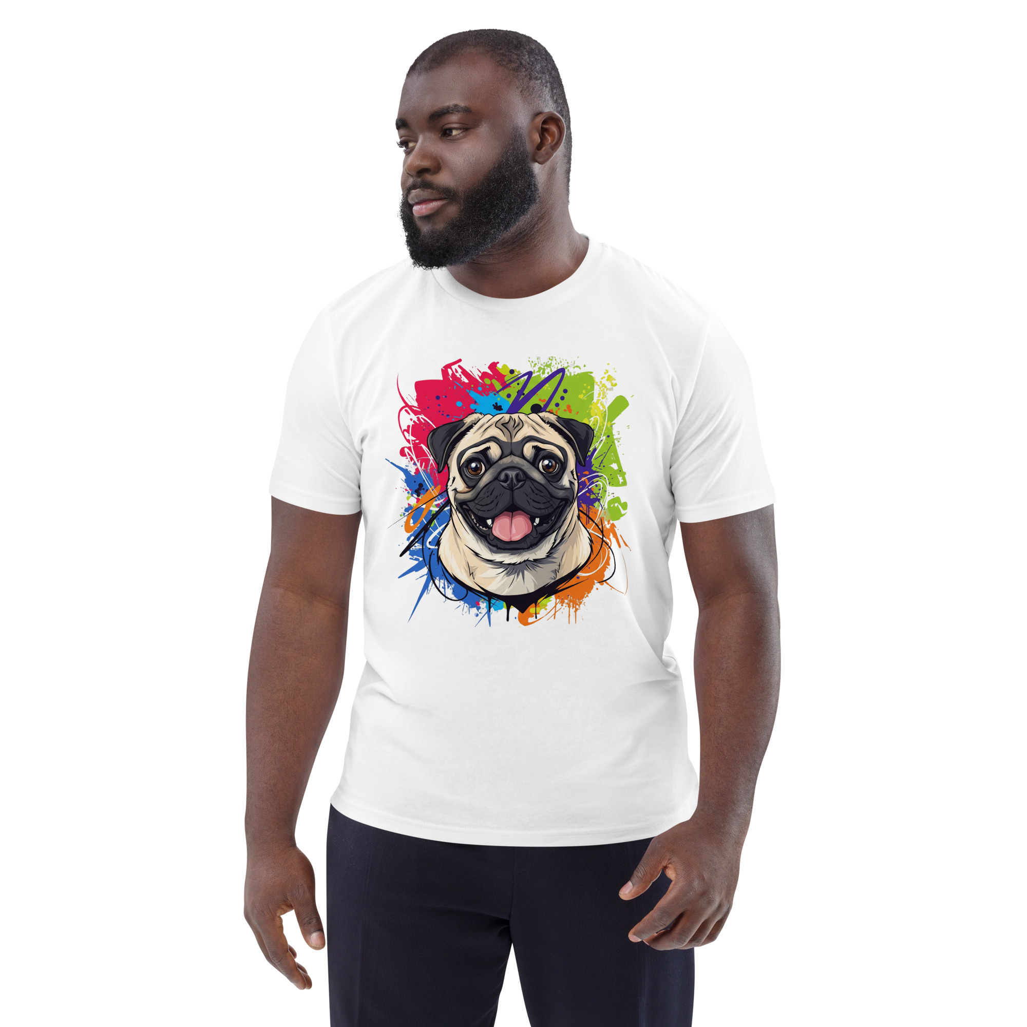 Una camiseta unisex de algodón orgánico para quienes aman a los Pugs. Con un diseño exclusivo que captura su carita arrugada y su personalidad encantadora, esta prenda combina comodidad, estilo y sostenibilidad.