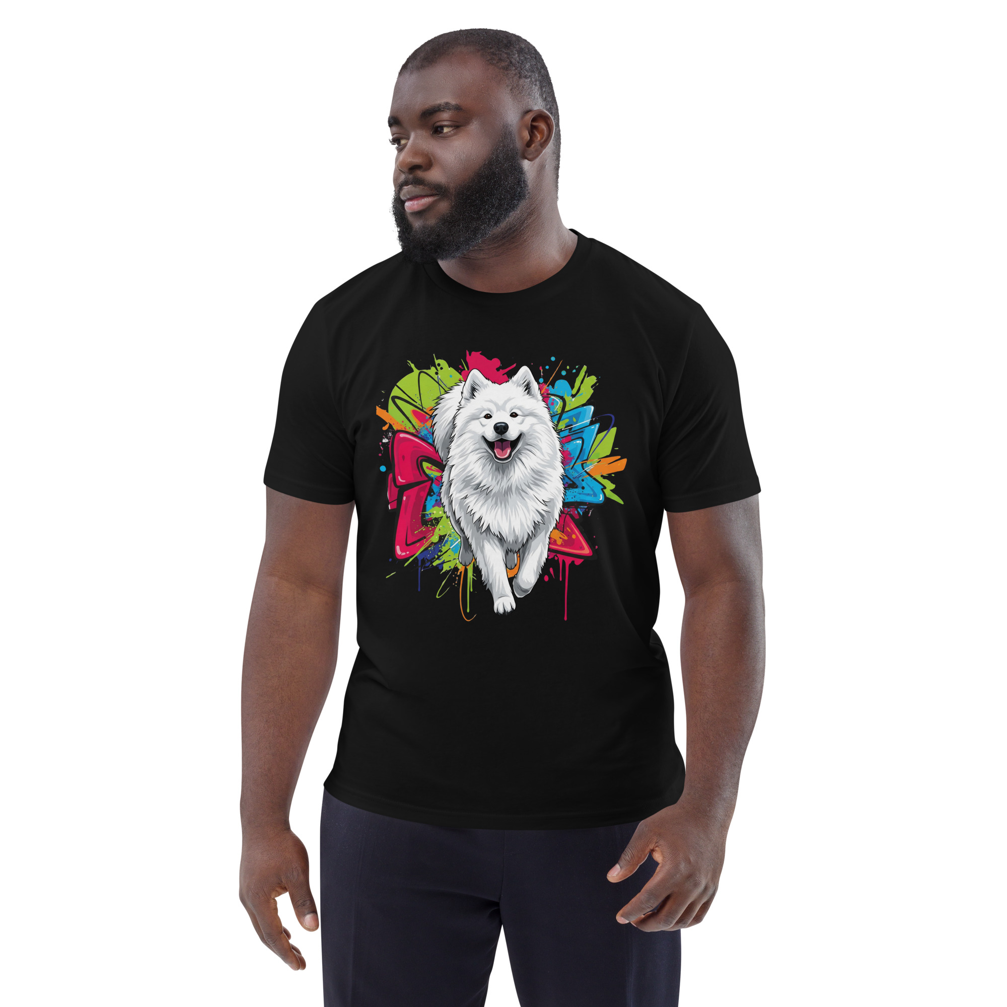 Muestra tu admiración por el Samoyedo con esta camiseta unisex de algodón orgánico. Un diseño único, comodidad premium y el compromiso con la sostenibilidad en una sola prenda.