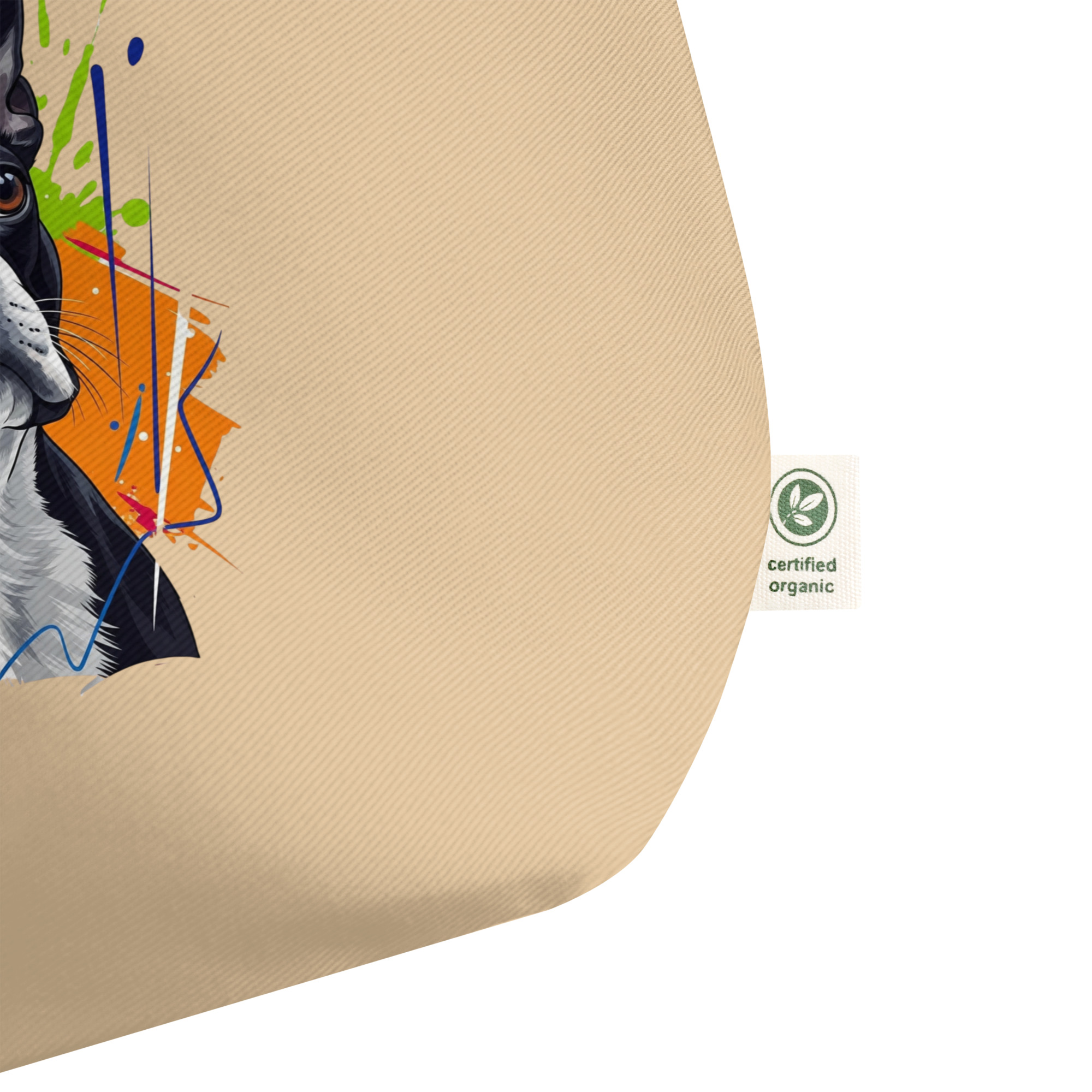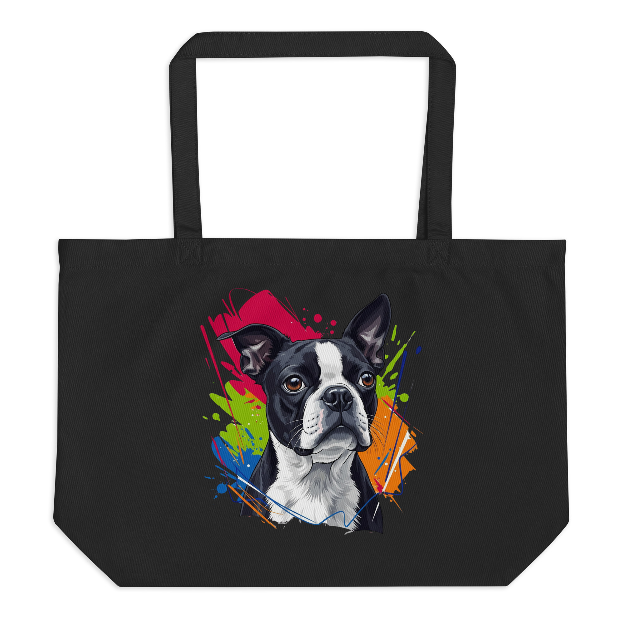 Ecobolsa de algodón orgánico para amantes del Boston Terrier. Comodidad, estilo y sostenibilidad en una gran bolsa tote con un diseño exclusivo.