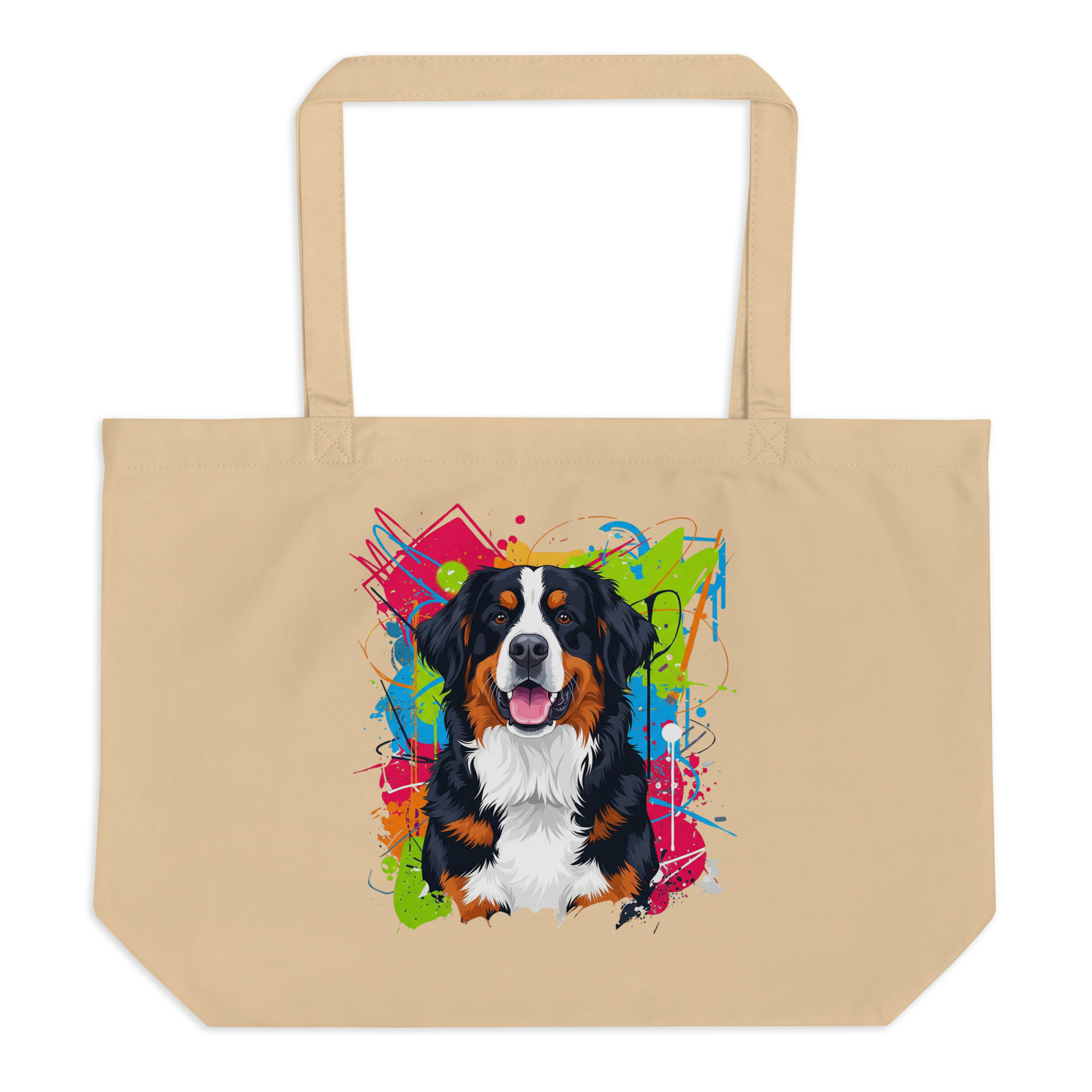No importa lo que lleves, esta ecobolsa será tu compañera ideal, tan confiable y cariñosa como un Boyero de Berna.