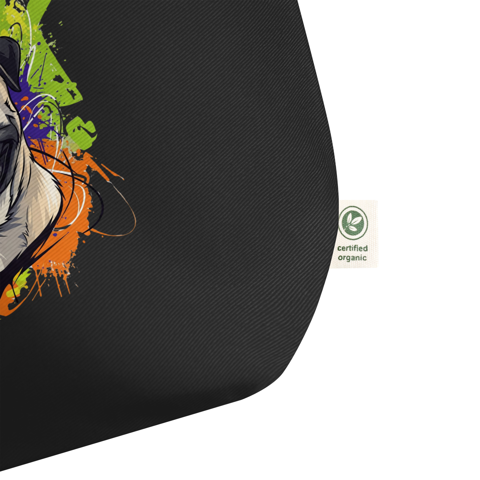 Dejar atrás el plástico es un acto de amor por nuestro planeta, y con esta ecobolsa de algodón orgánico, también es un tributo a la raza que te ha robado el corazón: el Pug.