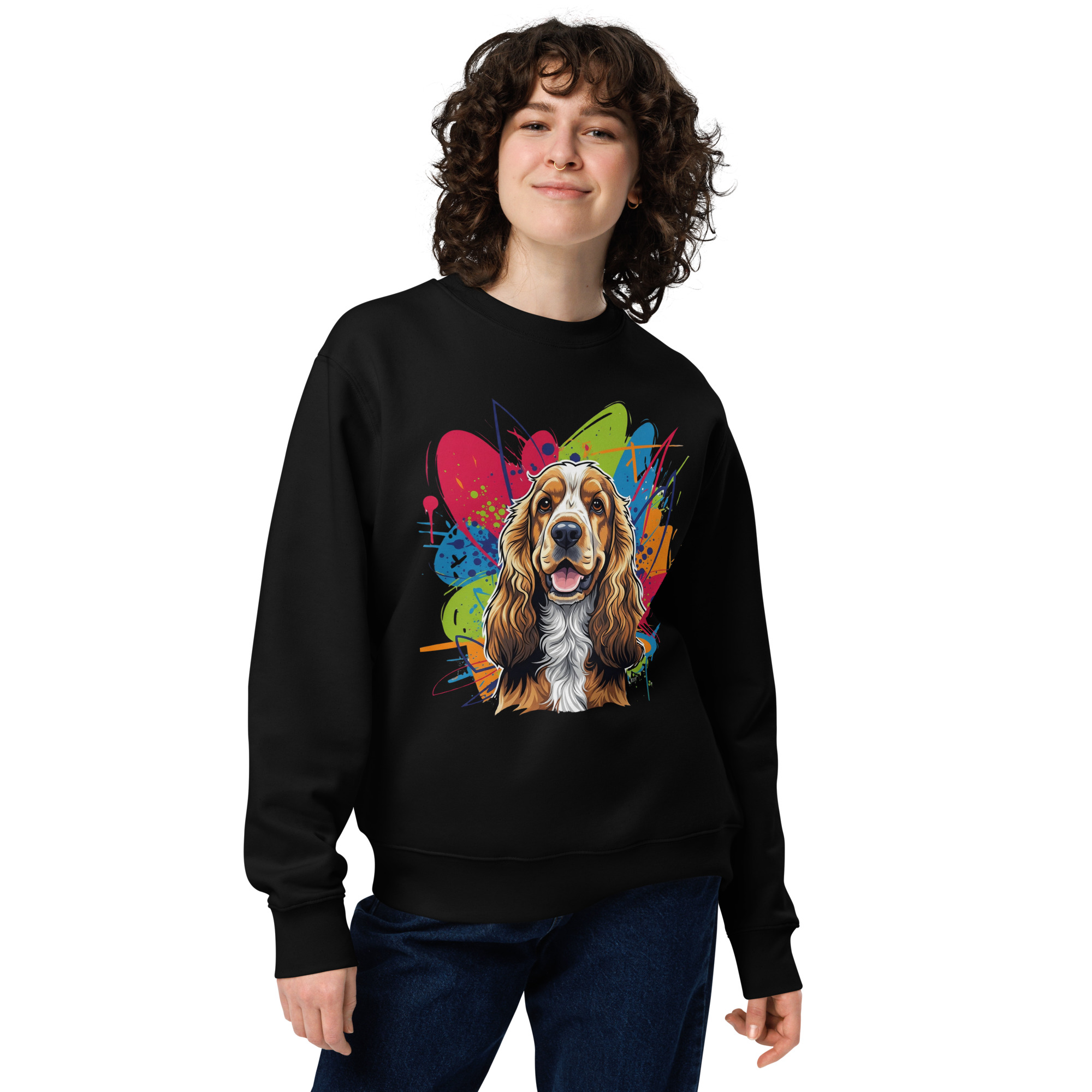 Abrígate con esta sudadera de algodón orgánico, diseñada para amantes de los Cocker Spaniel. Su suavidad te envolverá mientras su diseño exclusivo rinde homenaje a esos ojitos dulces y a su espíritu alegre.
