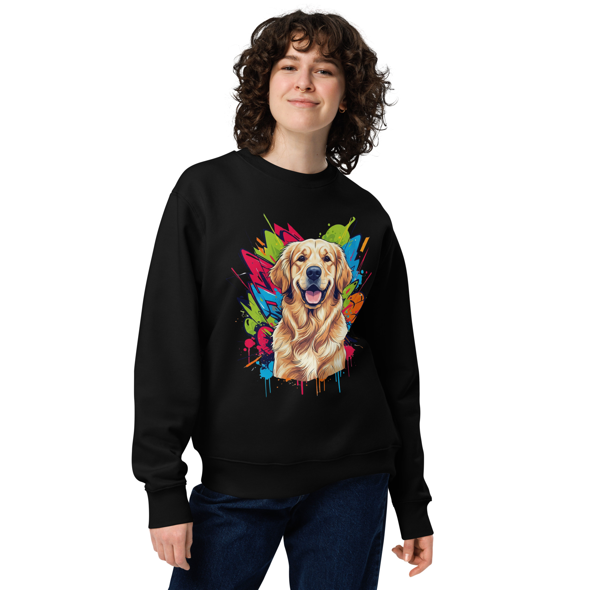 Sumérgete en la calidez y el estilo con nuestra sudadera de algodón orgánico, el tributo perfecto a tu Golden Retriever.